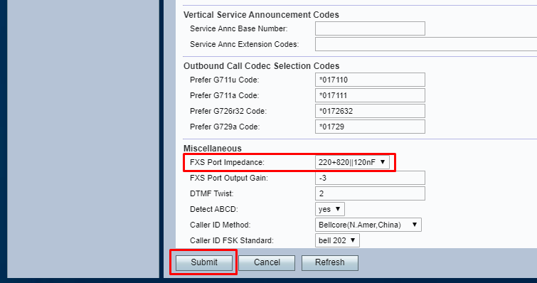 - FXS Port Impedance: 220+820||115nF