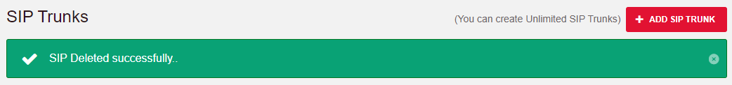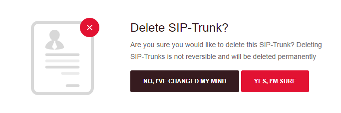 4. You will be prompted to confirm that you want to delete the SIP Trunk. Click on the