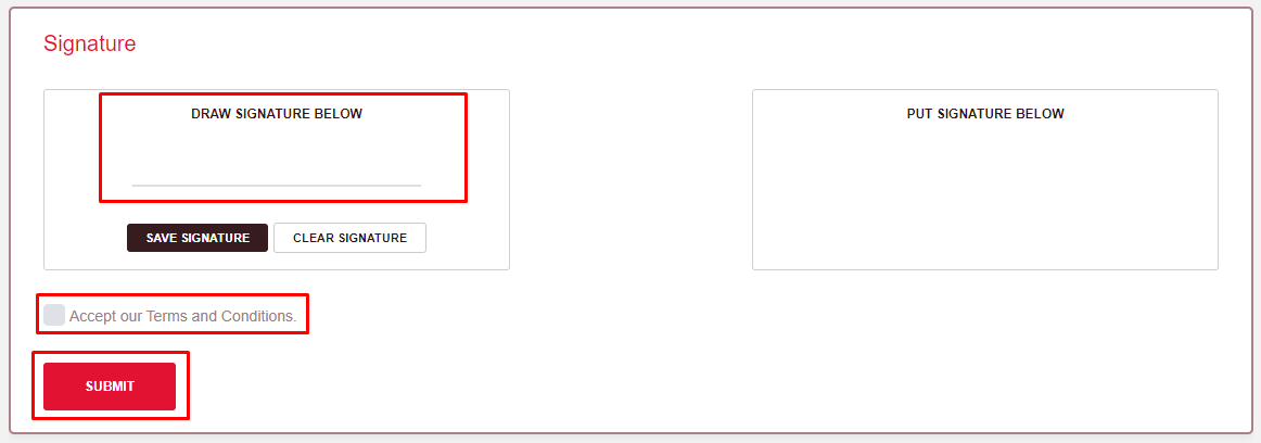 Save Signature. Click to Accept our Terms and Conditions and then Submit the request.