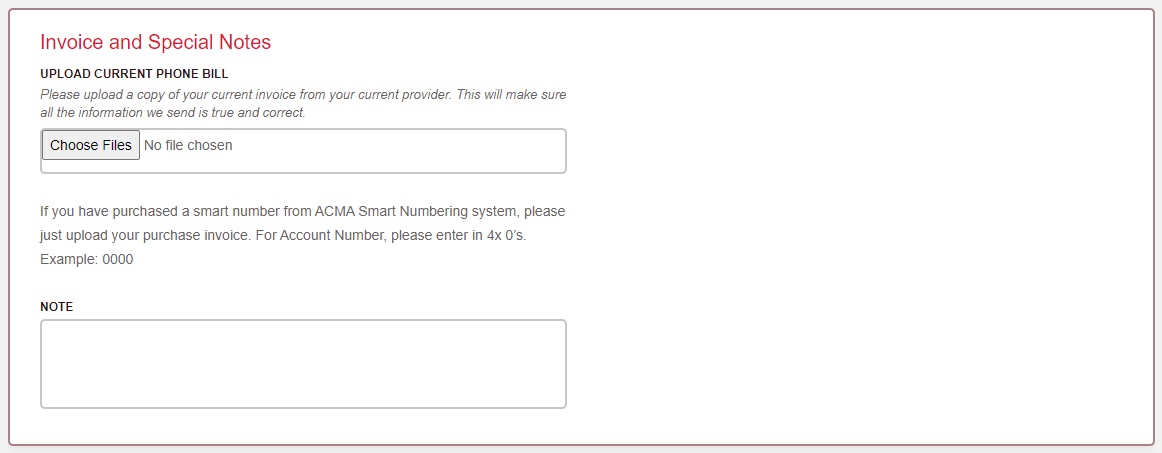 9. Please upload a copy of your current invoice from your current provider. This will make sure all the information we send is true and correct. If you would like to add any notes onto the application, please enter them here.