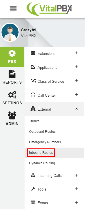Connectivity -> Inbound Routes.