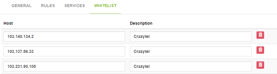 2. Click the Add button in the bottom right-hand side and input the following details into the corresponding fields. You can find the full list of Crazytel's IP Address in the