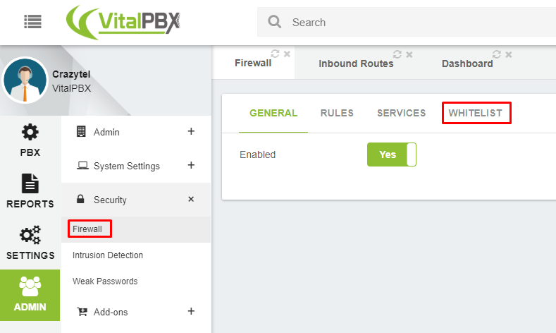 Whitelist tab.